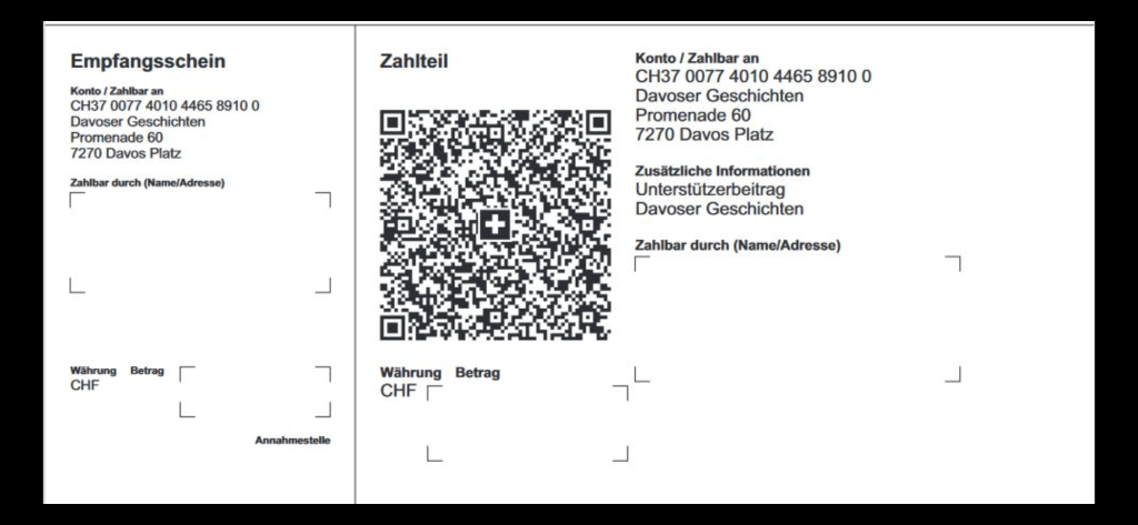 Wir offerieren verschiedene Möglichkeiten,wie sie uns unterstützen können. Für den Aufbau und Fortführung der öffentlichen Dokumentation von Geschichten zur Landschaft Davos. Sind wir auf öffentliche und private Spender und Werbeanzeigen angewiesen. Wir sind ein Verein, der mediale Projekte zum Thema Davoser Geschichte und Geschichten fördern will.